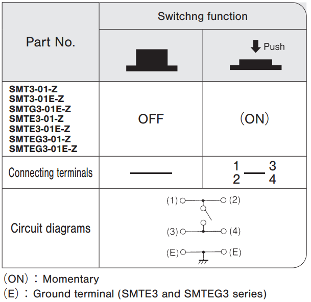 | SMTE3-01E-Z | 可浸洗型 | 橡胶按钮 | 压纹带装 | |