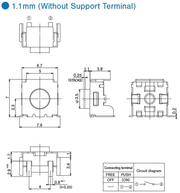 Actuator shape P1: Resin button 1.1 mm P3: Resin button 4.0 mm |