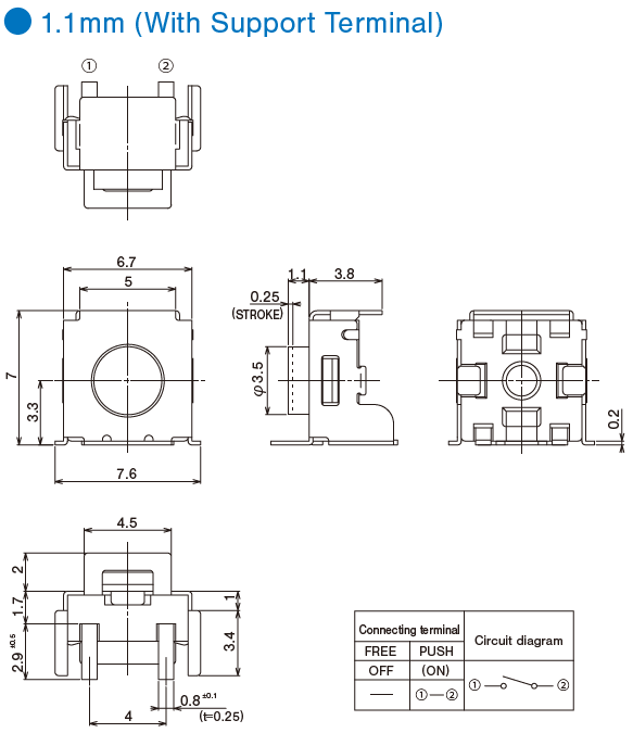 | CF-CA-1CB4-P111 | 1 bit | OFF -(ON) | Silver plated | Resin button 1.1 mm | R/A With Support terminal | 20 pcs./pack | |