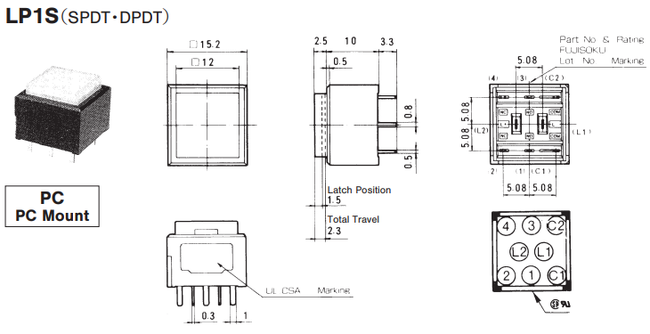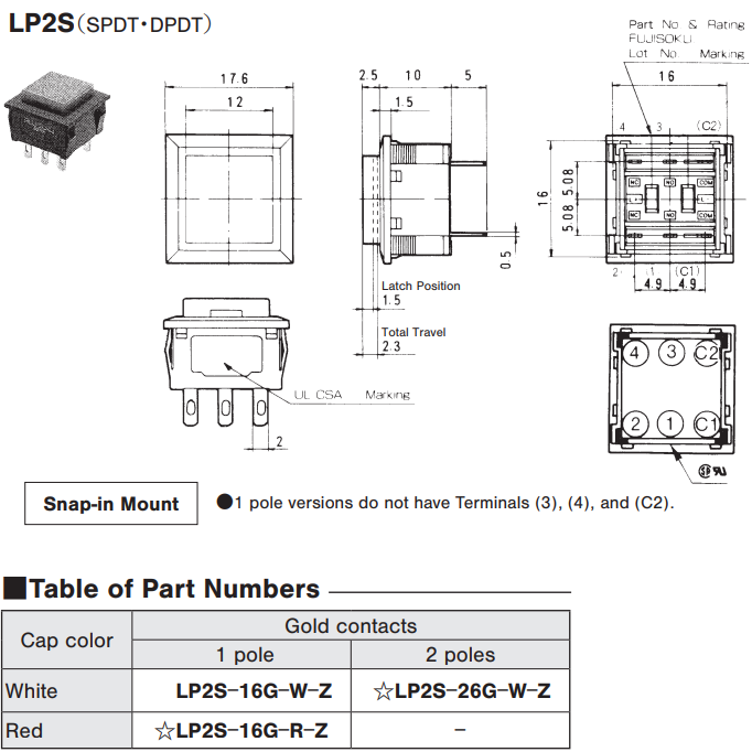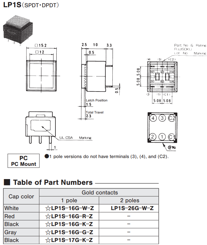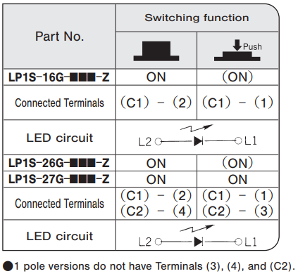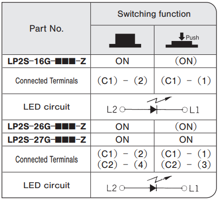 | Part No.:LP2S-16G-505-Z★ | 1 | ON - (ON) | With Flange ・Solder |