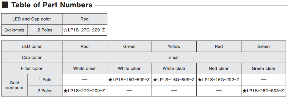 | Part No.:LP1S-16G-R-Z☆ | 1 | ON - (ON) | Red | Without Flange ・PC straight |