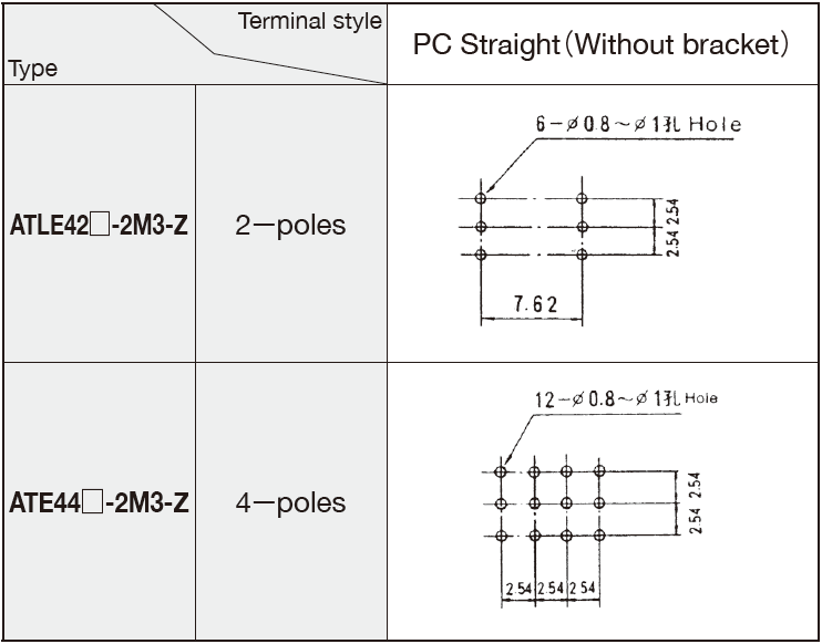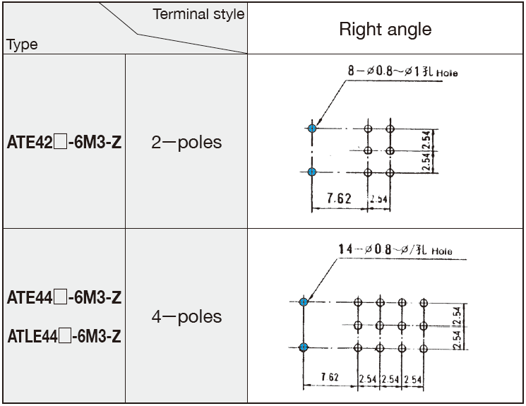 | 型式:ATE42D-6M3-Z★ | 4極ボックス | R/A 0.3"ピッチ | ON-ON | なし | スタンダード | |