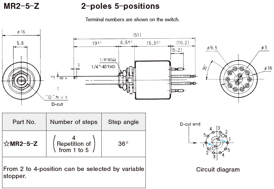 | 型式:MR2-5-Z☆ | 2回路 5接点 |