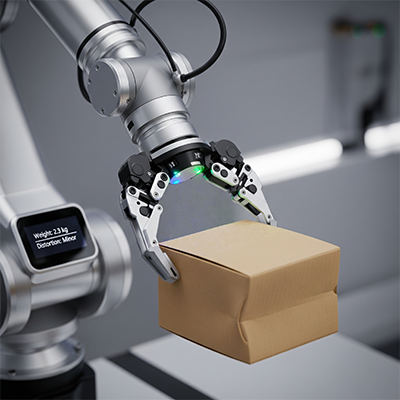 When mounted on a robot hand, it can differentiate not only the external appearance of packages but also detect mass differences, reliably preventing insufficient counts or erroneous transportation.