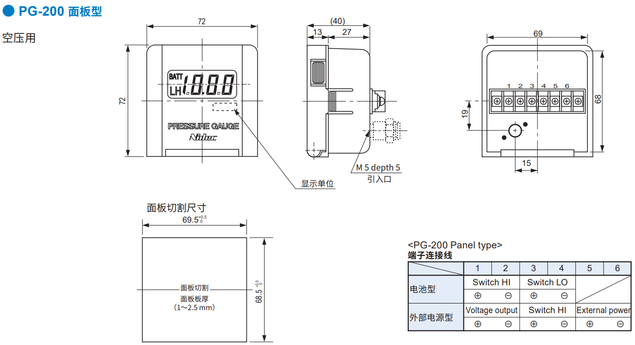 | PG-200-102VP-3-P | 表压 | 0~− 100 | kPa | 面板类型 | 外部电源 | |