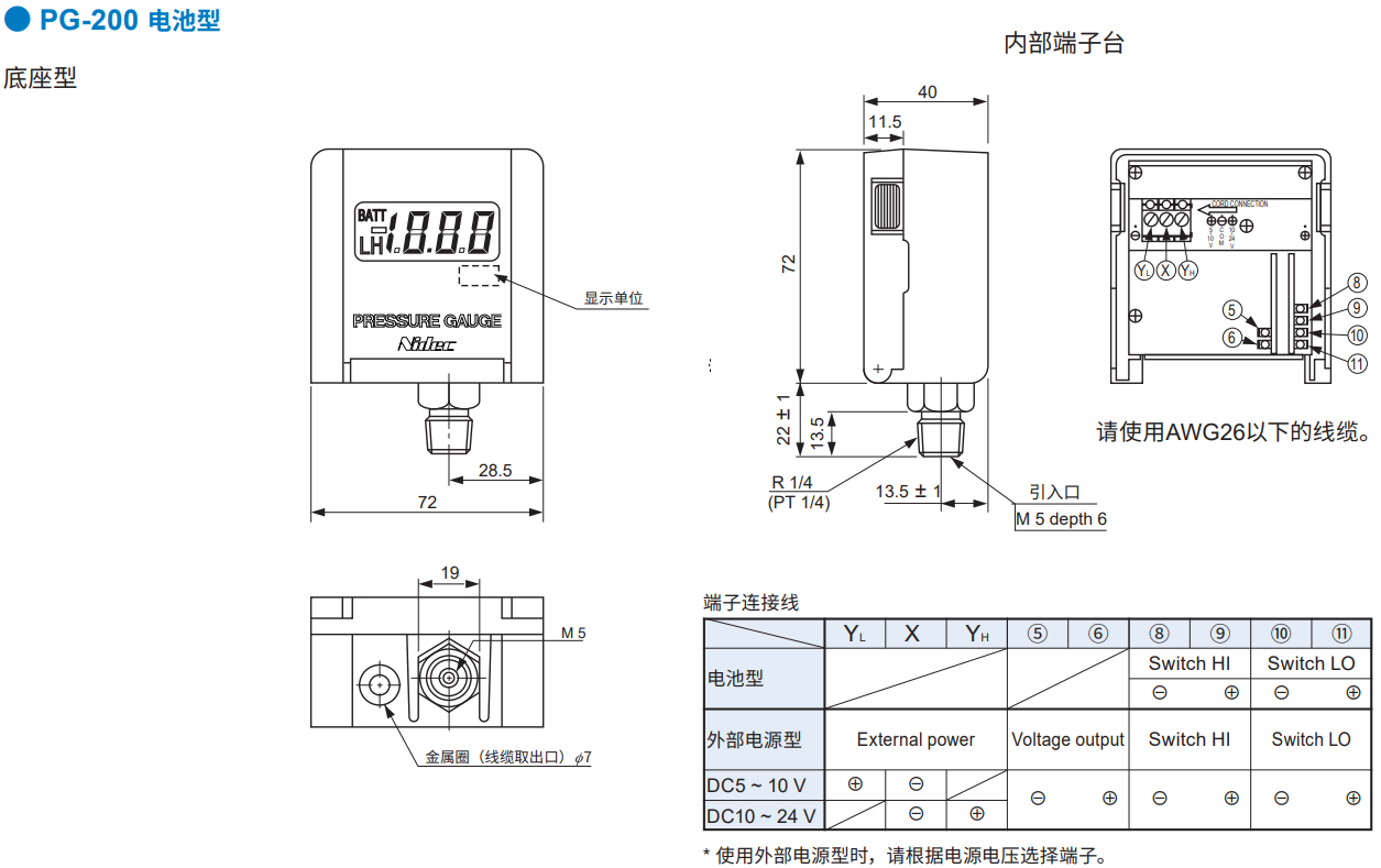 | PG-200-101G-3-P | 表压 | 0~9.81{0~1000 mmH2O} | mmH2O | 面板类型 | 外部电源 | |