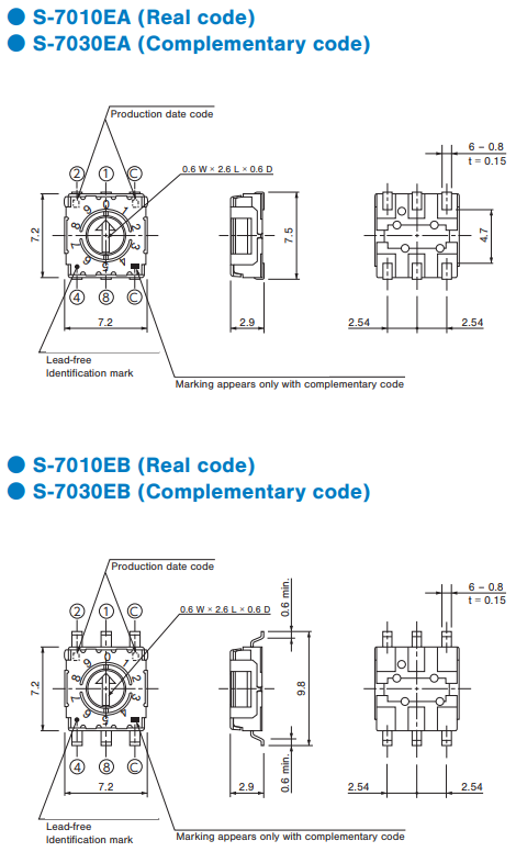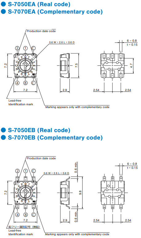 | S-7030EA | Top | J 引线 | 10 positions, Complementary |