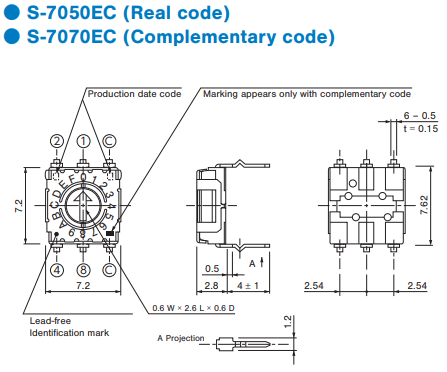 | S-7070EA | Top | J 引线 | 16 positions, Complementary |