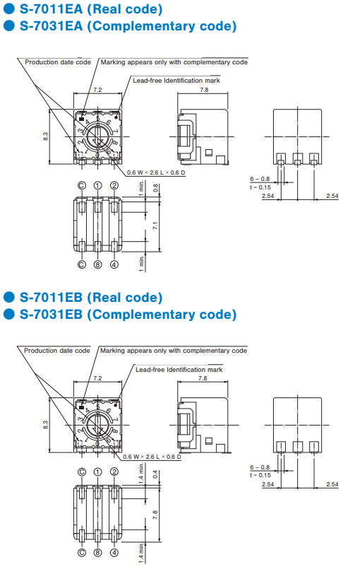 | S-7031EA★ | Side | J 引线 | 10 positions, Complementary |