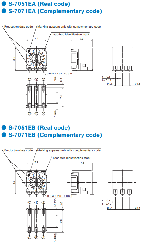 | S-7060EA | Top | J 引线 | 6 positions, Real |