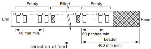 テーピングは500個/リール単位の包装になりますので、 500 個単位(500 個、1000 個、1500 個…)でのご注文をお願い致します。