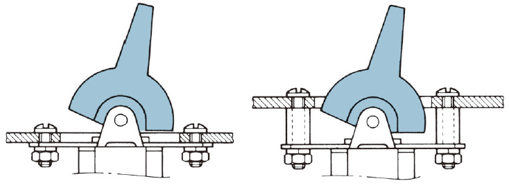 レバー・口ッカーはプレートの耳部をドライバーなどで押さえつけて固定してください。