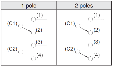 ●単極は、( C2)( 3)( 4)番端子の回路が無いため遊び端子となります。