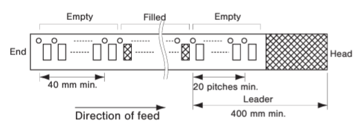 製品の脱落は、連続 2 個以内と致します。テープのリーダ部、空部およびリール寸法は図に示します。