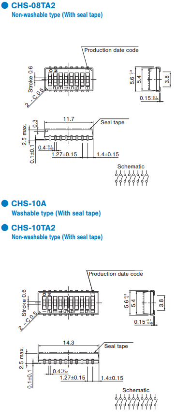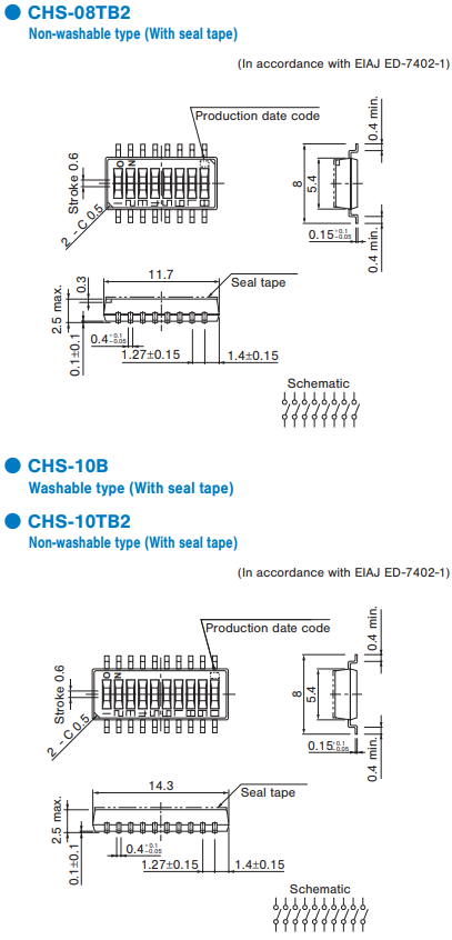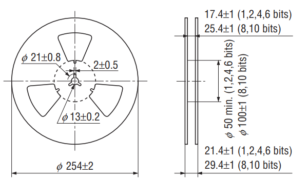 テーピング(CHS-02〜10タイプ)は500個/リール単位の包 装になりますので、500個単位(500個、1000個、1500個…)でのご注文をお願い致します。