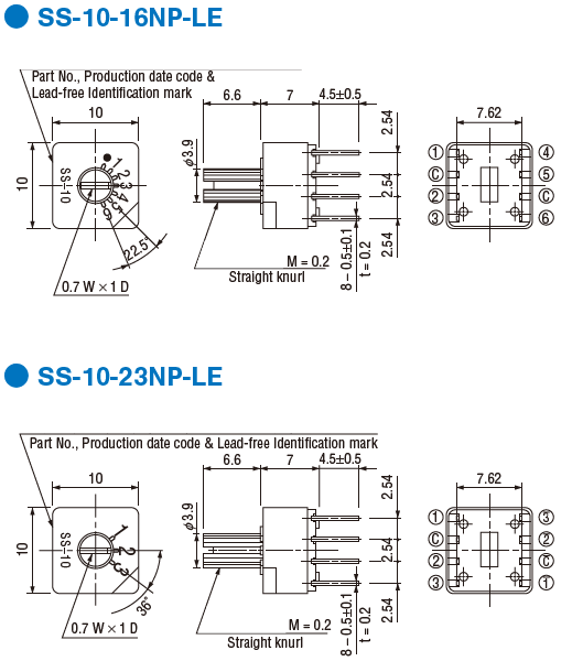 | SS-10-23NP-L-EW | Circuit type | Top setting | With knob | Non-shorting | 50 pcs./tray | |