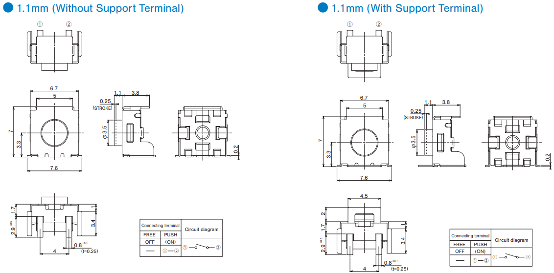 Actuator shape P1: Resin button 1.1mm P3: Resin button 4.0mm |