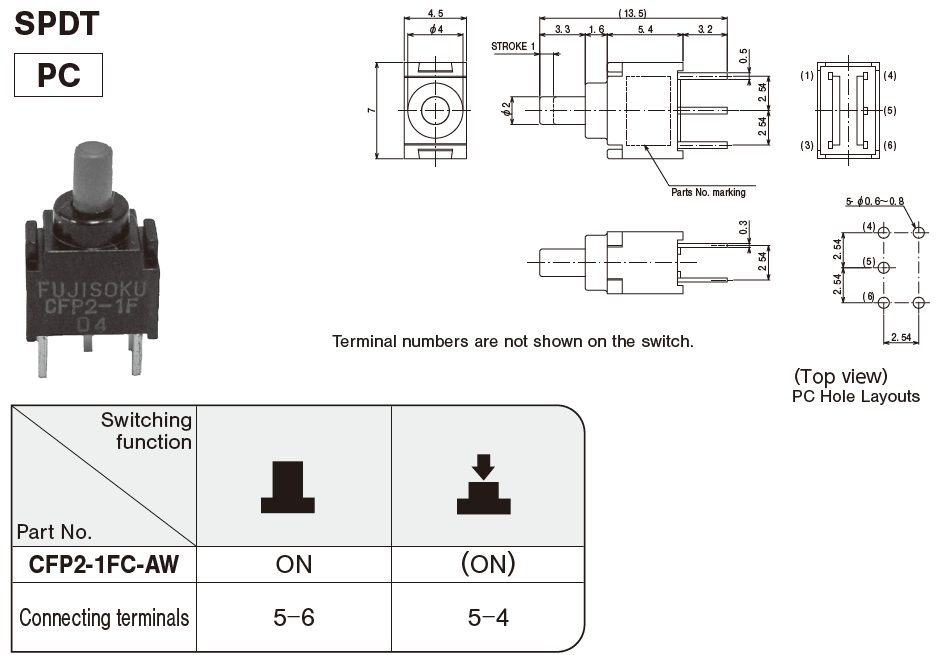 | Part number | Number of poles | Switching function | Terminal style | Packaging | CAD |