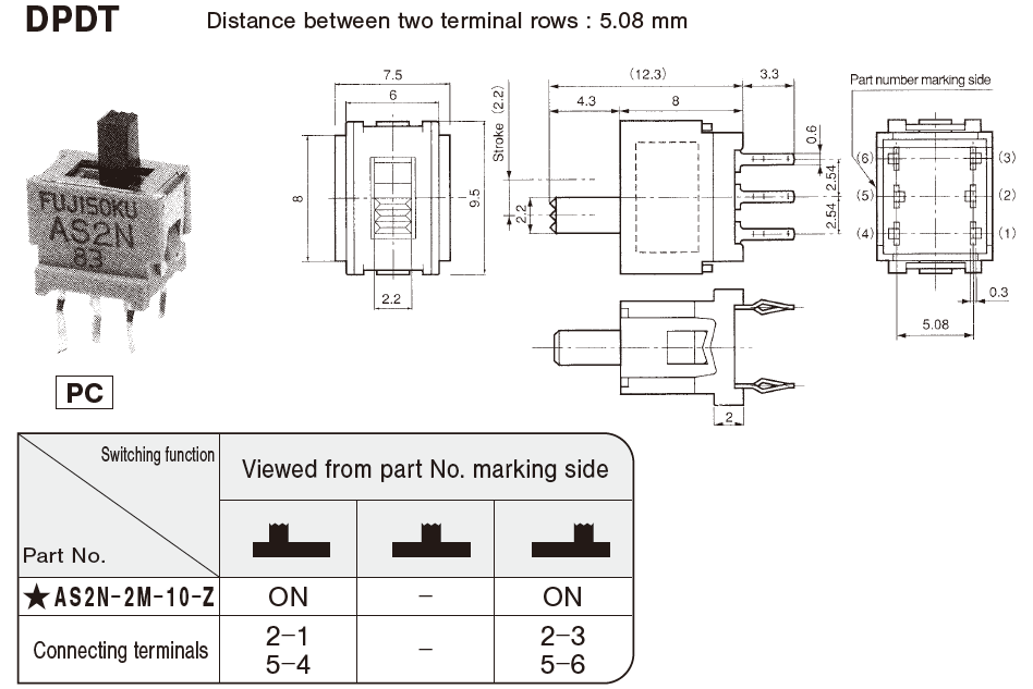 ★AS2N-2M-10-Z | DPDT | PC 端接 | ON-ON | 兩個端子間距離 5.08mm | |