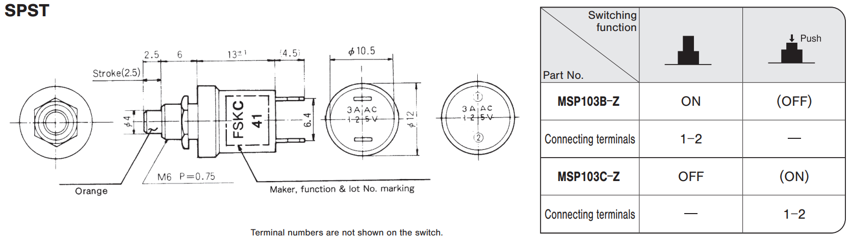 | MSP103C-Z | 1 bit | Solder terminal | OFF - (ON) | Silver plated |