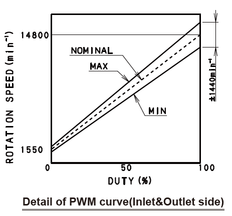 - Note2: In the case that power is turned on during fan rotor is locked, the fan shall attempt to restart at a typical repetition rate(Temperature rise will be prevented). The fan will automatically restart when the locked rotor condition is released.